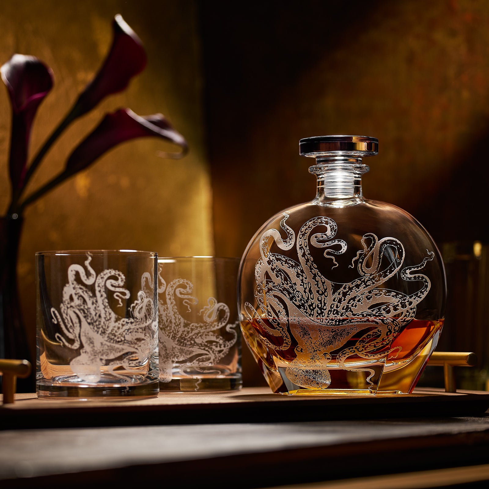Truly in a league of her own, our favorite cephalopod has wrapped her arms around this crystal glassware collection, bringing a sense of deep-water whimsy to the table. Elegant, playful and beloved by all,