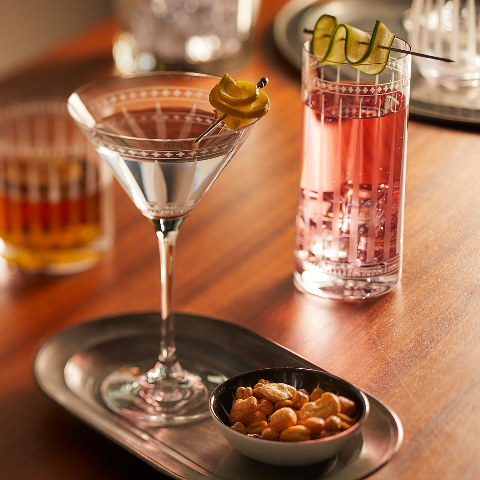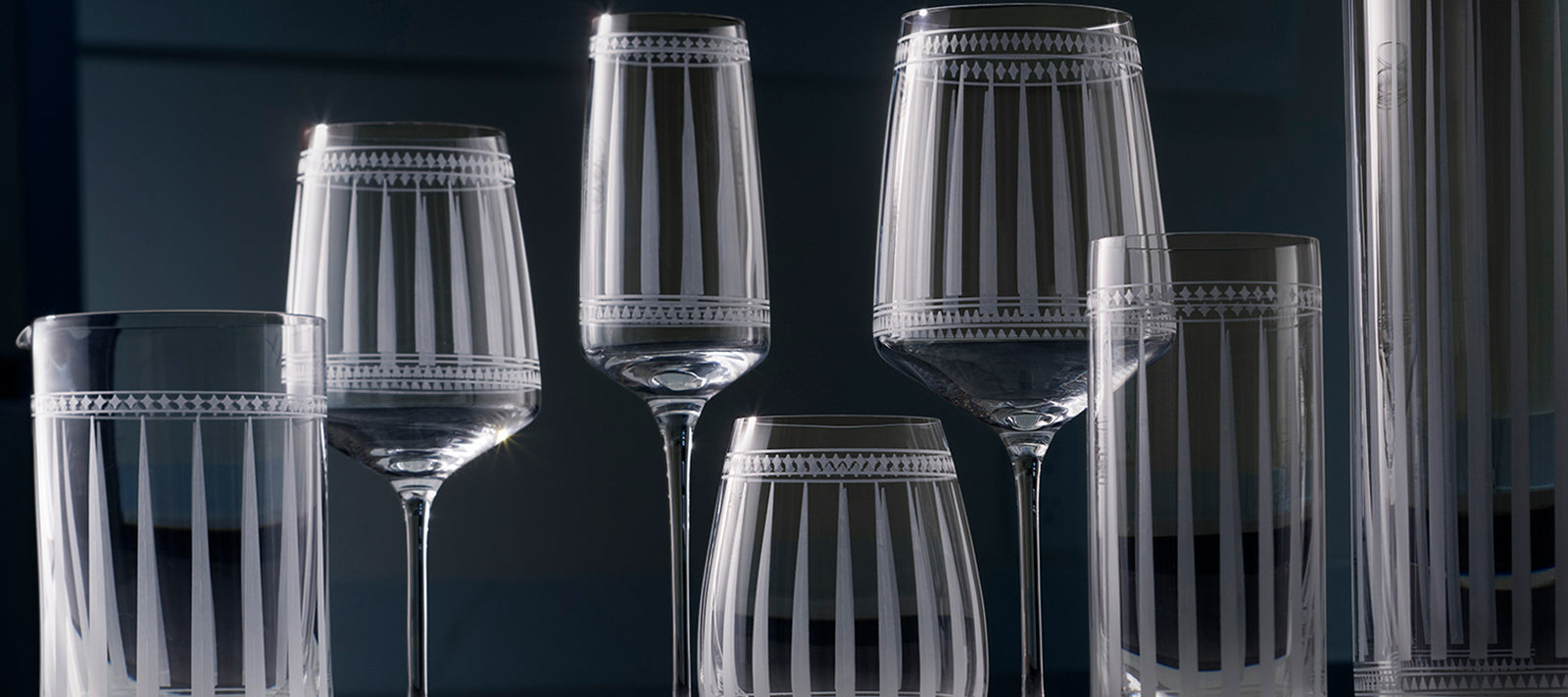 Inspired by the bold, graphic patterns of Morocco, refined by a love of Art Deco forms, these are uniquely elegant, sophisticated vessels for whatever you're pouring.