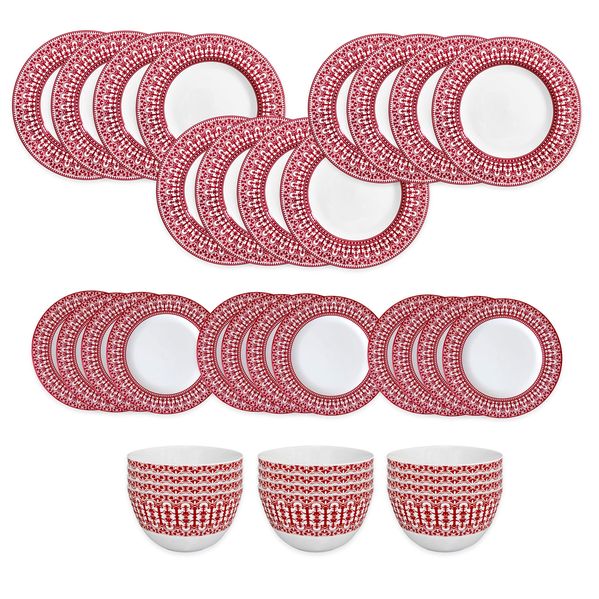 This 36 piece set is everything you need to set a table for 12, making it the perfect collection for the host. While it's perfect for holiday tables, we love using the rich red set all year round.