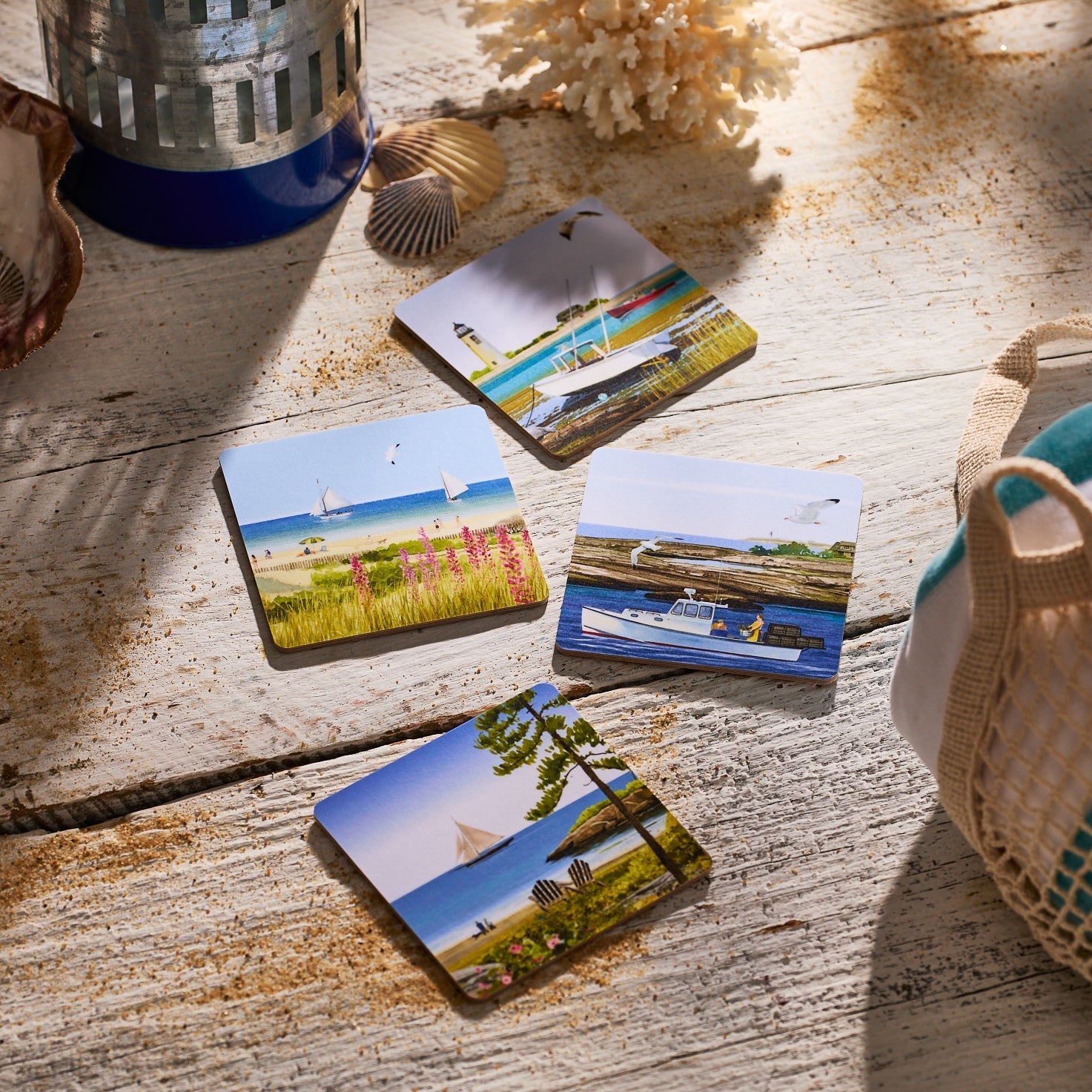 Set the scene for summer any day of the year with the Caskata X Felix Doolittle Summer Birchwood Coasters. This fabulous set of four showcases stunning watercolor landscapes by Felix Doolittle, each capturing the essence of a sun-soaked New England summer. From sailboats gliding over sparkling waters to serene shorelines dotted with vibrant flowers, these coasters bring a piece of coastal charm right into your home.