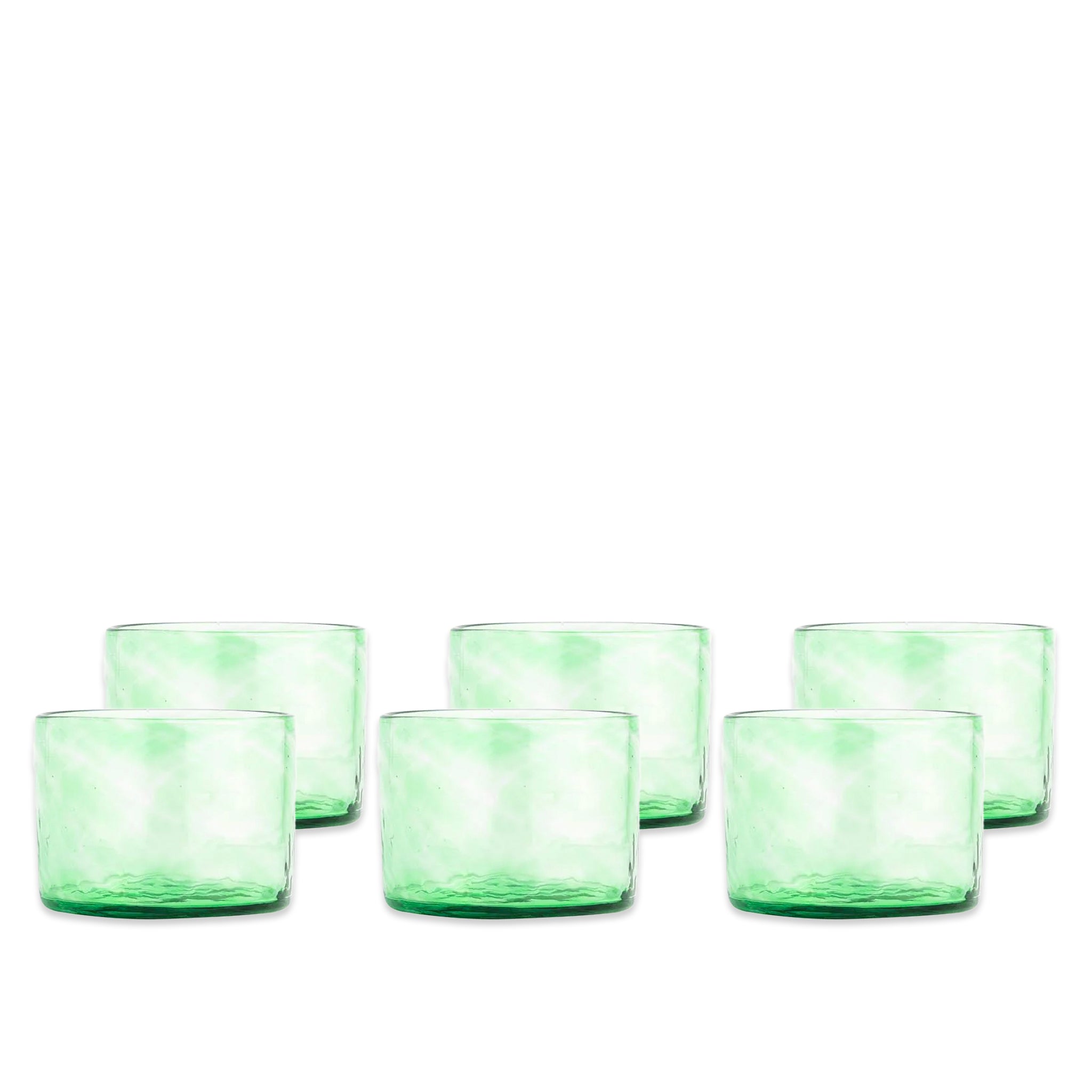 Classic Caskata style meets chic European function in these handblown tumblers. These will be your new go-to glasses for sipping everything from wine to whiskey. Once in hand, you'll admire way the light plays through the fresh green colored recycled glass.