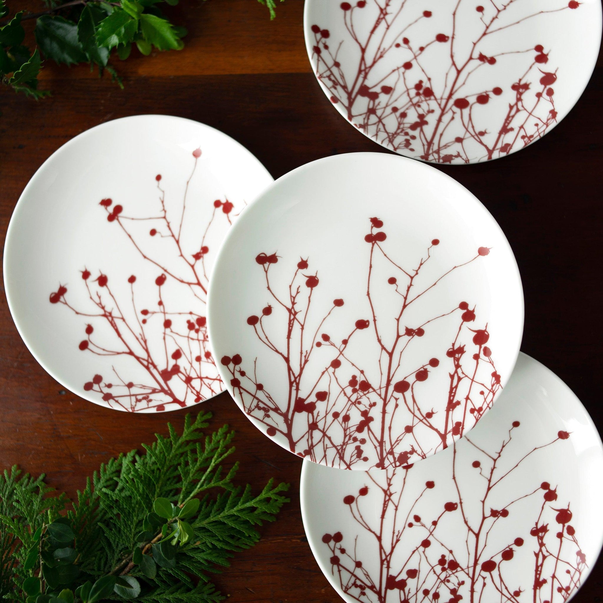 Add a pop of seasonal charm to your table with our Winterberries Small Plates. Featuring vibrant red berries and delicate branches set against creamy white porcelain, these plates are a celebration of winter's natural beauty.